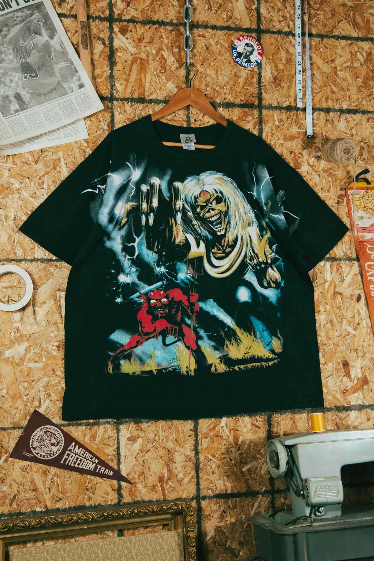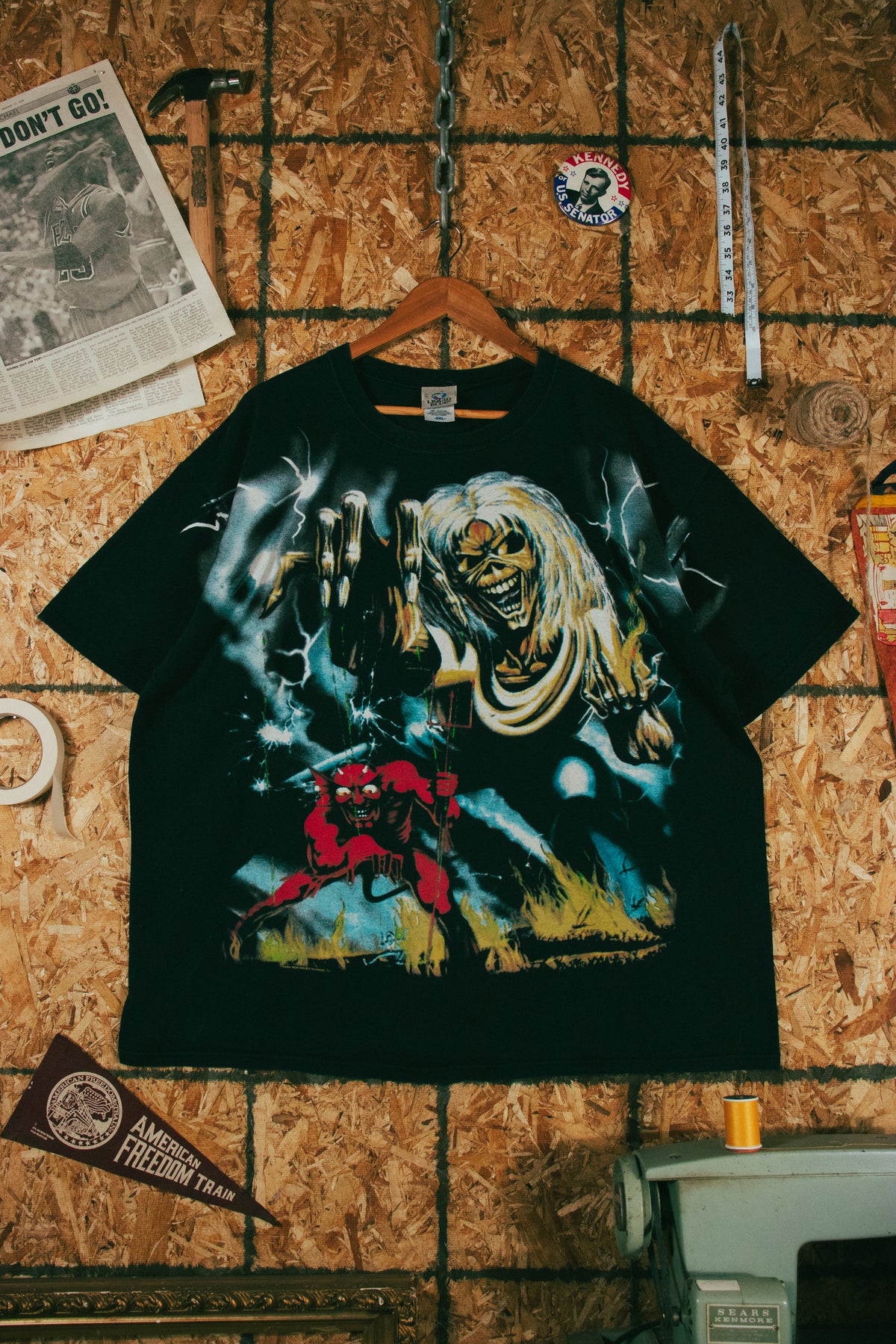 Vintage 2004 Iron Maiden All Over Print Liquid Blue T-Shirt